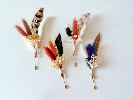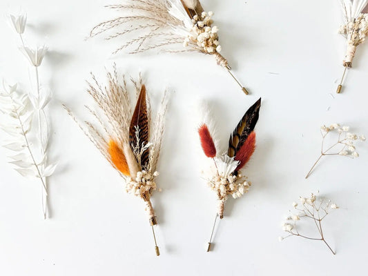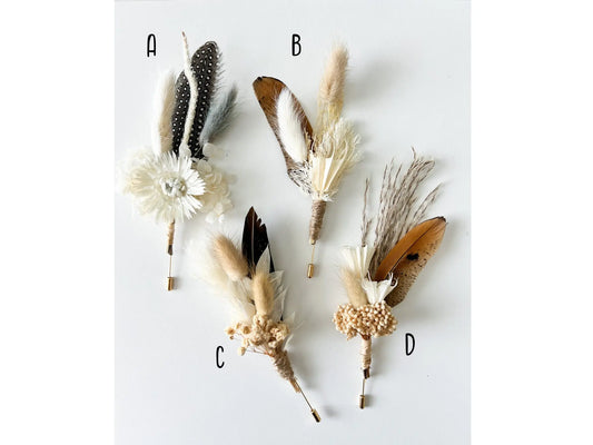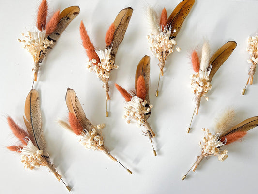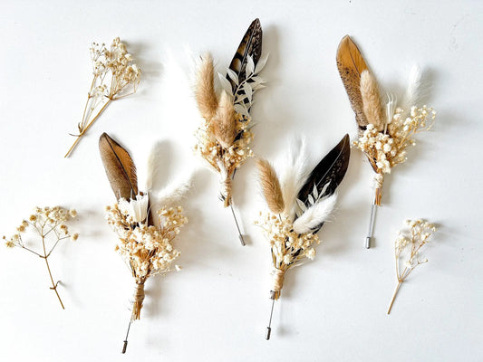 Boho Wedding Boutonnieres, Neutral Dried Flower Boutonniere, Boho Fall Wedding Flowers, Boutonniere Set, Pheasant Feather, Choose Your Style