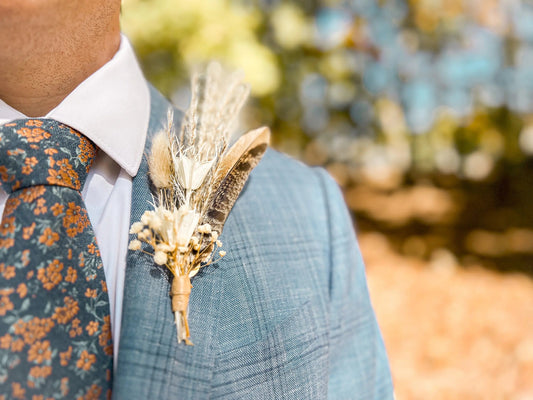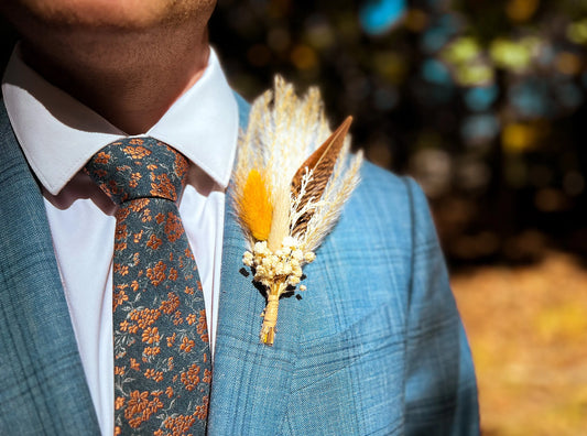 Dried Flower Boutonniere, Boho Wedding Flowers, Terracotta, Mustard Yellow and Neutral Dried Flowers, Bunny Tails, Fall Wedding