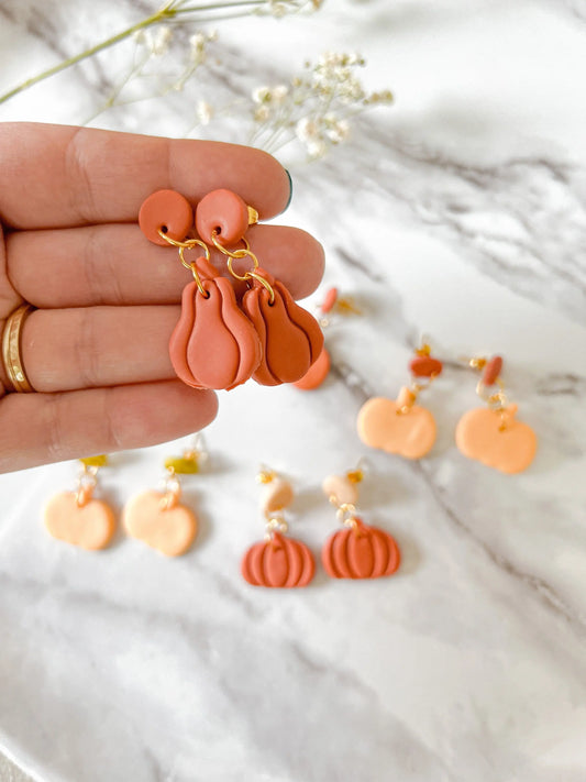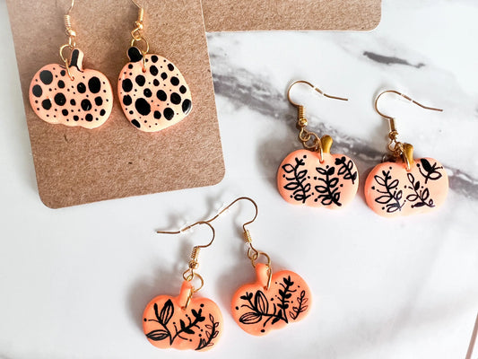 Pumpkin Dangle Earrings, Polymer Clay, Fall Jewelry, Assorted Colors and Styles, 1 Pair