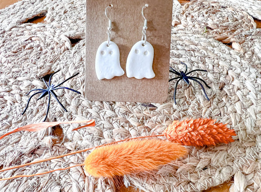 Ghost Earrings, Halloween Earrings, Clay Earrings, Fall Earrings, Clay Dangles, Polymer Clay Jewelry, Lightweight, White Ghosts, Minimal