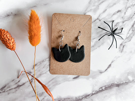 Halloween Earrings, Black Cats Dangles, Bat Earrings, Witch Hat Earrings, Fall Clay Dangle Earrings, Polymer Clay Jewelry, Lightweight, Gift