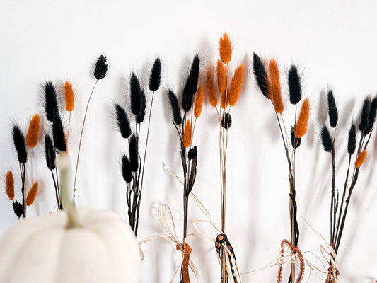 Halloween Orange and Black Bunny Tails, DIY Fall Decor, DIY Fall Wreath, Fall Dried Flower Bunches, Orange Dried Flowers, Make Your Bunch