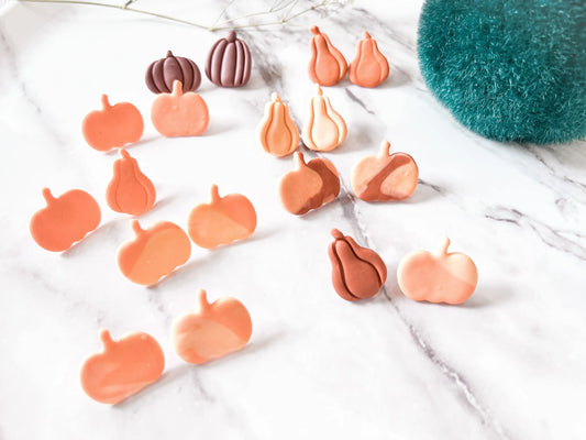 Pumpkin Stud Earrings, Polymer Clay, Fall Jewelry, Pumpkins and Gourds, Seasonal Earrings, 1 Pair, Assorted Styles and Colors
